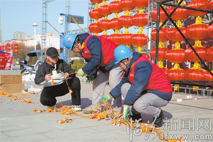 临汾新闻网讯 为确保新春佳节期间电网供电安全稳定,国网翼城县供电公司营销党支部组织工作人员开展了“亮旗领航 优质服务打造电力美好生活”活动。图为近日该公司太行黎明共产党员服务队队员在县城唐尧路段对彩灯线路、用电设备和计量箱等进行全面检查,切实消除安全隐患。