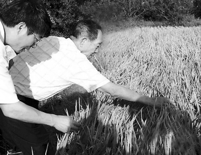 袁隆平院士在高产示范基地查看杂交稻的长势情况。张彤 摄