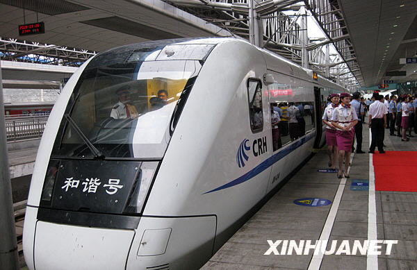 9月26日,重庆火车北站,乘务人员在作发车前的准备。当日,重庆和成都之间的首列“和谐号”动车组列车从重庆火车北站开出,顺利到达成都,这标志着西南铁路正式迈入了高速时代。“和谐号”动车组将每天有7对列车在成渝铁路上运行,预计每日总运输能力将达1.1万人。新华社记者 郭立 摄