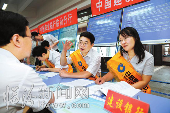 图为企业代表正在和银行人员洽谈。