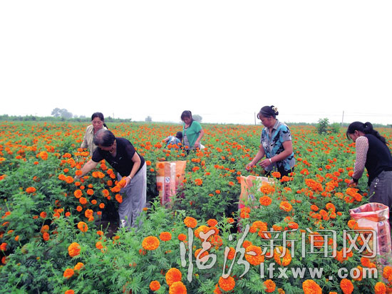 在收购点,一位村民早早就送来了自己刚刚采摘到的几十袋万寿菊。他笑着说:“种植万寿菊比较简单,还有技术员进行指导,投工少、很划算,今年万寿菊的产量很高,我家5亩地能收入一万多元,明年我还要再扩大种植面积,争取早日致富。”