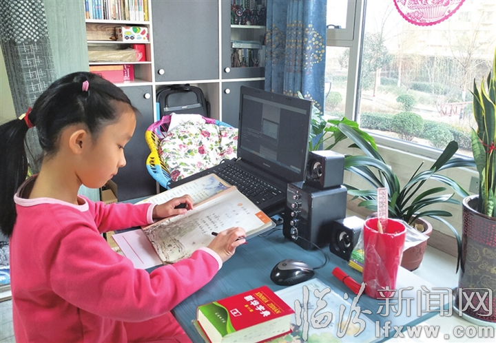 临汾新闻网讯 2月10日,解放路学校二年级三班的李熙月在电脑前上课。疫情当下,该学校通过线上开学第一课,从科学防疫、空中课堂、自觉学习等方面,对全体师生、家长提出要求,培养学生良好的卫生、学习习惯和主动担当的品质。