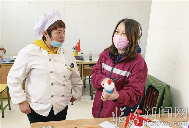 临汾新闻网讯 四月十四日,在临汾同盛实验中学,临汾市疾控中心驻校疫情防控指导员在指导校方人员科学使用消毒产品。我市高三年级开学以来,市疾控中心选派专业技术人员入驻十六所市直市管学校,以专业的疫情防控标准和专业的技能、快速处置能力,全力保障高三年级学生和老师的学习生活安全有序开展。