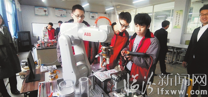 临汾新闻网讯 日前,临汾职业技术学院与山西华翔集团共建的华翔学院成立,为学生实训实习提供了职场环境。该学院将通过校企合作开展技术研发、技术服务、课题研究、成果转化,创立校企深度合作品牌,进一步打造装备制造行业技术技能人才培养高地。图为华翔学院机电系学生正在进行实践操作。