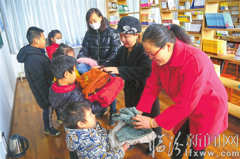 1月22日上午,尧都区刘村镇段村小学的阅览室里欢笑声不断,9岁的女孩史玉红和妹妹、9岁的男孩宋浩东收到了大爱临汾公益联盟捐助者送来的新衣和压岁钱,史玉红激动地跳起来。