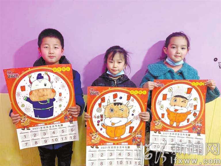 手绘丑牛迎新春 记者 摄