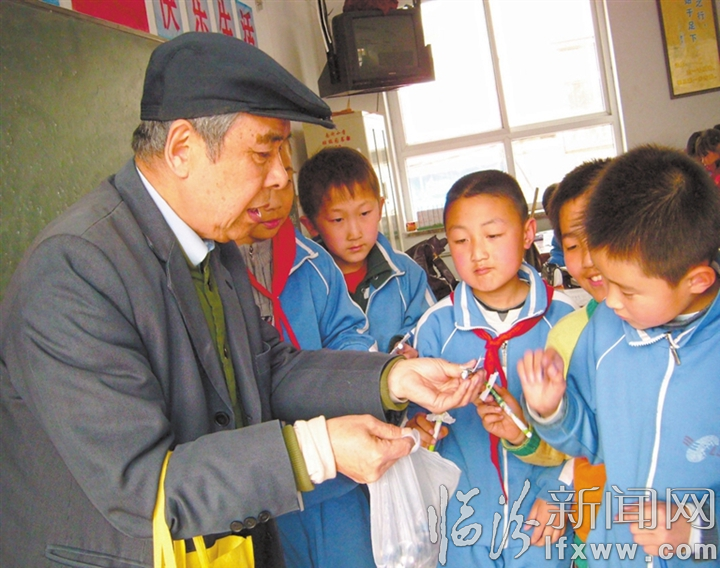 这位老人就是退休老干部郭景唐。从2004年以来,郭景唐先后走进临汾四中、南街小学、解放路小学、解放二校、东关学校、时代风华特色学校等20多所学校,义务修理钢笔3万余支,被孩子们亲切地称为“钢笔爷爷”,被人们称作身边的活雷锋。