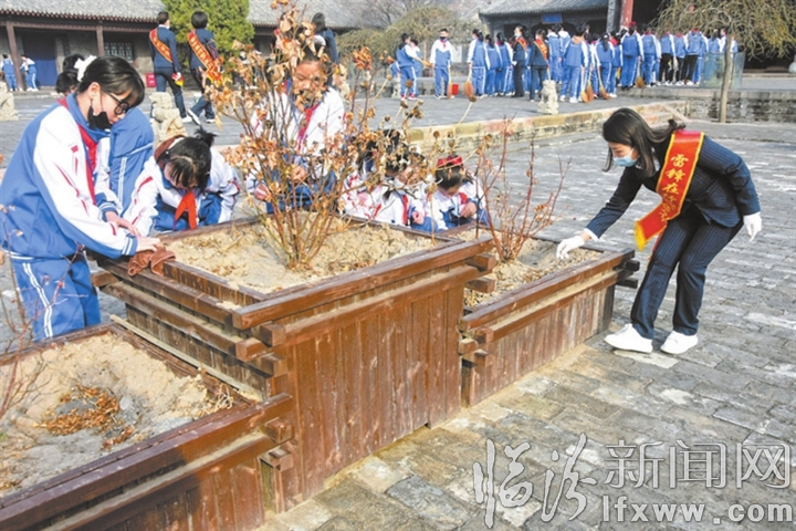 连日来,霍州市实验小学通过开展环境整治志愿服务、主题班日等活动,引导广大学生自觉培育和践行社会主义核心价值观。图为该校学生正在进行义务劳动。