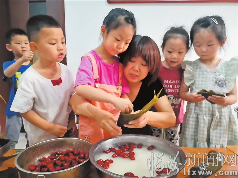 临汾新闻网讯 6月18日上午,临汾晨曦国学幼儿园开展了包粽子活动。孩子们在老师的指导下学习包粽子。在制作和玩乐中,感受到了优秀传统文化的魅力。