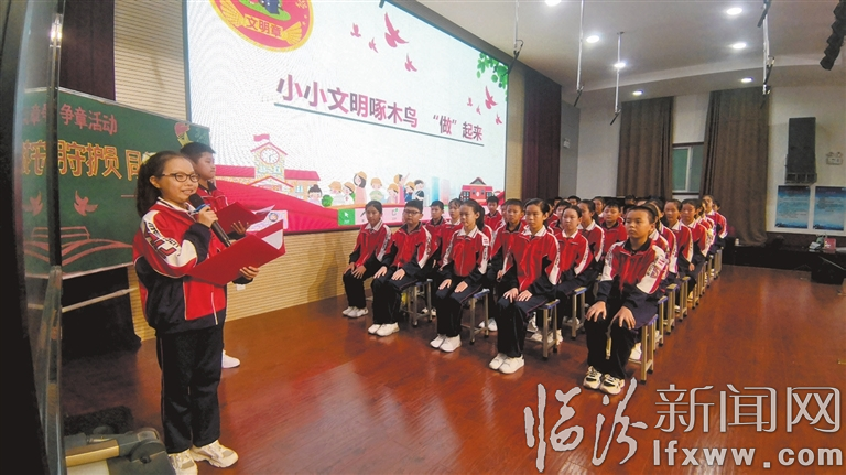这是该校六(5)班中队开展的“争做文明守护员 同心共建文明城”红领巾奖章——文明章争章活动主题中队会现场。活动中,他们通过宣传文明城市“赛起来”、靓丽临汾风景线“亮起来”、小小文明啄木鸟“做起来”、养成文明好习惯“演起来”、文明环保小卫士“分起来”、文明家庭创意品“变起来”六个篇章,展示了少先队员们积极参与学校“红领巾奖章”特色文明章争章活动的各项内容,让队员们更加深刻地明白了创建文明城市,要在细微之处见精神,在举止之间显文明。