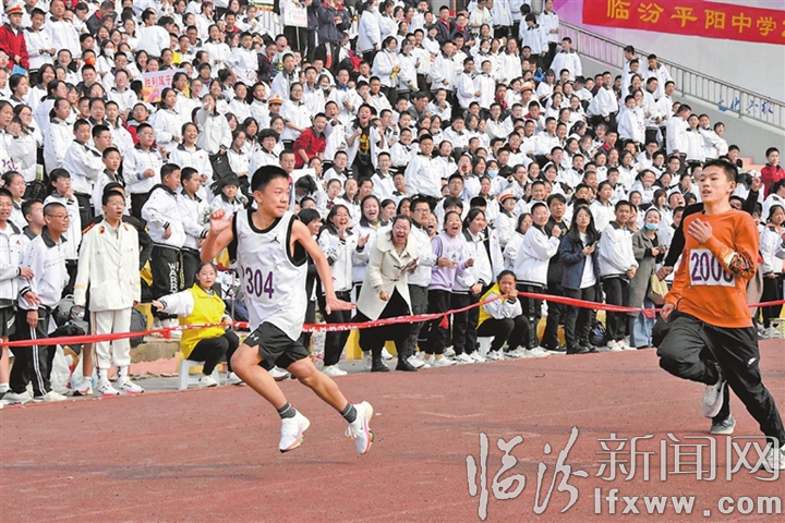 临汾新闻网讯 青春启航,未来可期。近日,临汾平阳中学举行了秋季运动会,通过多样化的比赛形式,丰富学生的校园文化生活,促进他们德智体美全面发展。图为100米短跑比赛现场。(李子闻 摄)