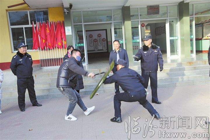 临汾新闻网讯 日前,尧都区临钢小学教育集团组织开展了“爱心家长志愿者护学岗”培训活动。活动中,受邀的市公安局东城分局桥东街派出所的民警们,为大家演示了遇到危险时,如何正确使用安保器械,进一步提升了家长们的安全防护能力。图为家长们正在进行实操演练。本报记者 摄