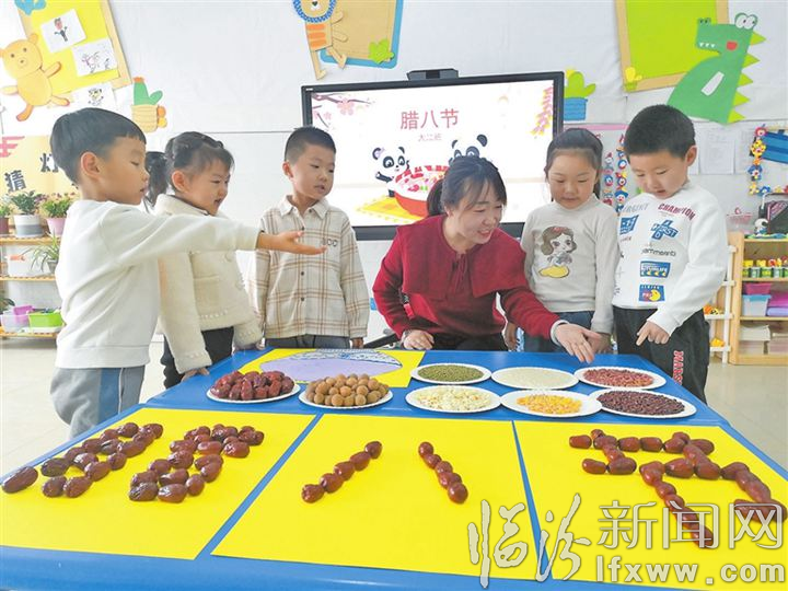 临汾新闻网讯 1月10日,尧都区幼儿园开展了“腊八节”主题活动,小朋友们在老师的指导下了解腊八习俗。图为该园的小朋友们在辨认腊八粥的食材。