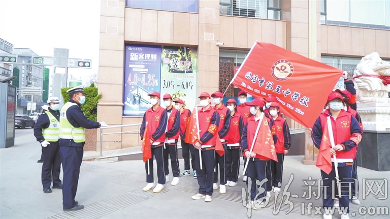 临汾新闻网讯 4月1日上午,临汾五中高一学生在交警部门的指导下开展了交通安全志愿行动。今年以来,该校将交通安全志愿行动作为平安校园创建的重要内容,组织学生志愿者走出校园,走上街头,疏导同学放学,宣传交通安全知识,助力全社会养成遵章守纪的文明交通习惯。记者 摄