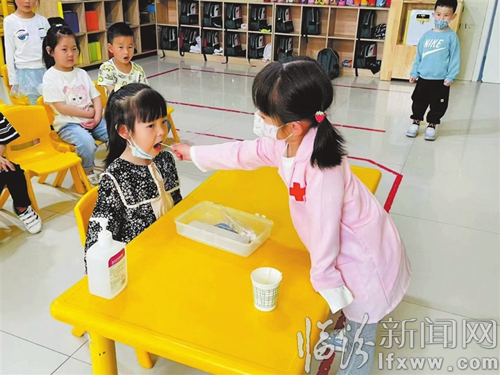 临汾新闻网讯 4月22日下午,在临汾经济开发区正宇幼儿园,孩子们正在做“我来当大白”游戏。多年来,该园将生活实践融入特色游戏,让孩子们在玩中学、学中乐、乐中长,取得了良好的育人效果。