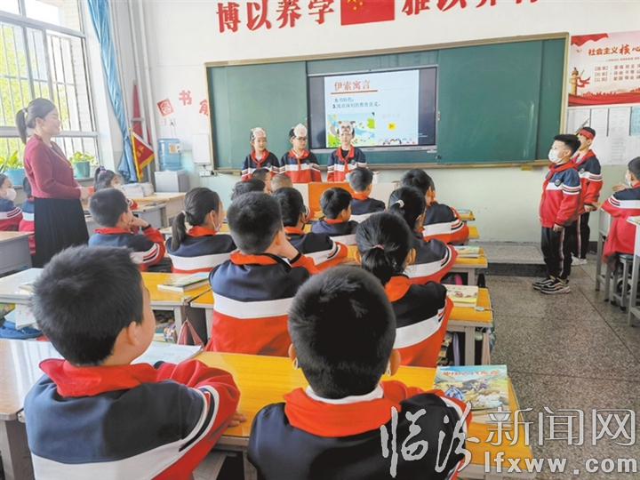 临汾新闻网讯 4月20日下午,临汾市解放路第三小学五(2)班的阅读课上,学生表演了《伊索寓言》故事情景剧。近年来,该校将阅读列入校本课程,培养孩子们的阅读习惯,提升他们的阅读兴趣和阅读能力。本报记者 摄
