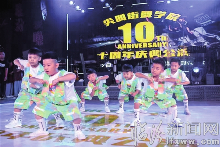 8月2日,在临汾尖叫街舞舞蹈学院,参加街舞培训的小朋友们正在汇报演出。记者 闫锐鹏 摄