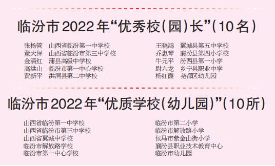 临汾市2022年“优质学校(幼儿园)”(10所)
