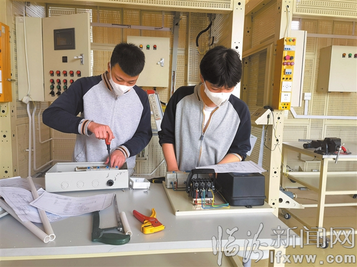 ▲秋季开学以来,乡宁县职业中学与省内多家企业开展合作,建立校内实训基地,通过“顶岗实习,同工同酬”培养模式,为学生就业打下坚实的基础。图为该校机电一体化专业三年级学生正在进行实习操作。 本报记者 郭 璞 摄