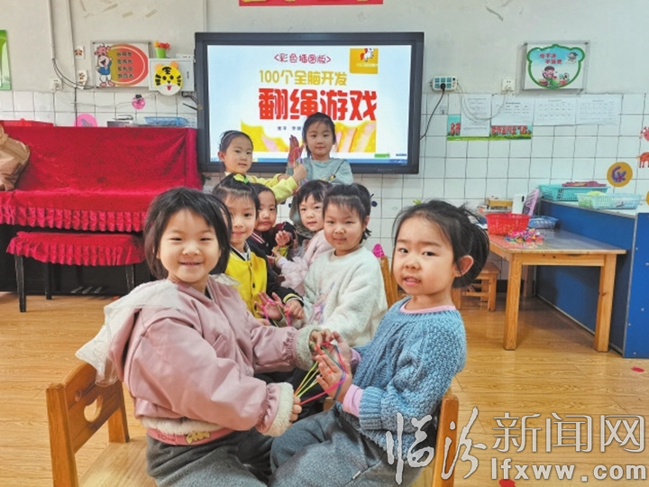 图⑤为市幼儿园中一班学生玩起了翻绳。