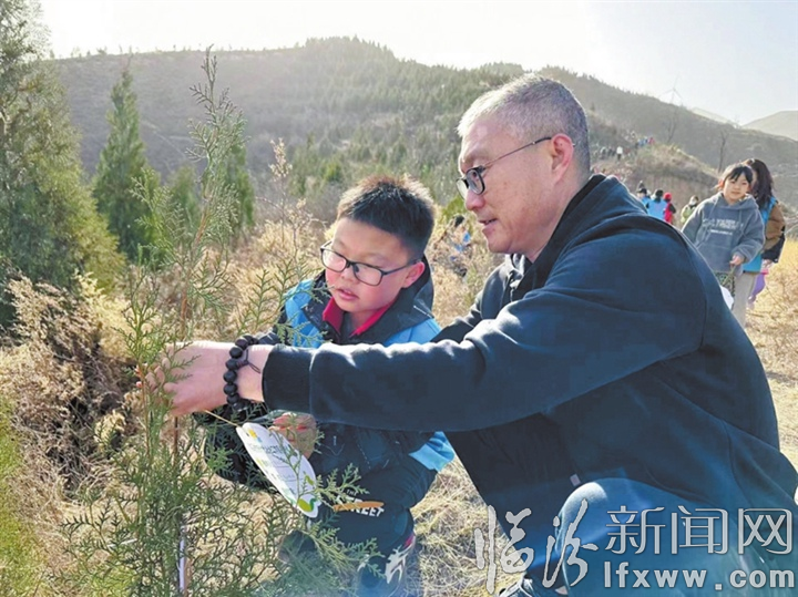 临汾新闻网讯 3月12日,侯马市民政局、侯马市新时代社会工作服务中心以“拥抱春天,争做绿色小使者”为主题,组织小学生在紫金山上开展丰富多彩的活动。图为社工教孩子们认识树苗、如何养护树苗,普及植树节知识。