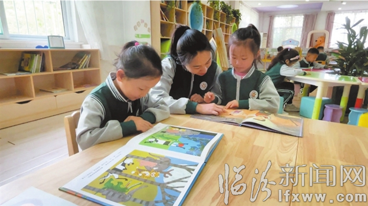 4月22日,翼城县汇丰中心幼儿园老师正在为幼儿讲绘本故事
