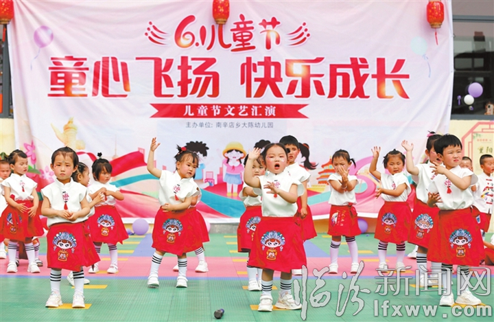 5月30日,襄汾县南辛店乡大陈幼儿园的小朋友在表演节目。“六一”国际儿童节之际,大陈幼儿园举办了“童心飞扬 快乐成长”文艺汇演,用丰富多彩的节目迎接“六一”的到来。 李现俊 摄