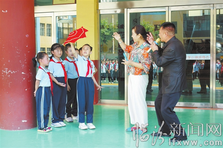 临汾新闻网讯 为扎实推进“双减”、丰富校园文化生活,6月25日,古县城镇小学开展了以“戏曲进校园 国粹润童心”为主题的戏曲进校园活动。图为学生们跟着受邀老师快乐学戏曲。