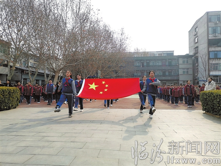 2月26日,开学第一天,临汾时代风华特色学校组织全体师生举行升国旗仪式。