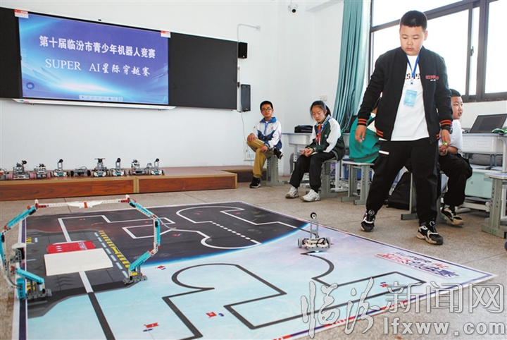 近日,第十届临汾市青少年机器人竞赛活动在襄汾县第五小学校举行。来自全市的1500余名青少年拼技能、比创意,在“智能巡线”“星际穿越”等多个项目中展开了激烈角逐。图为比赛现场。