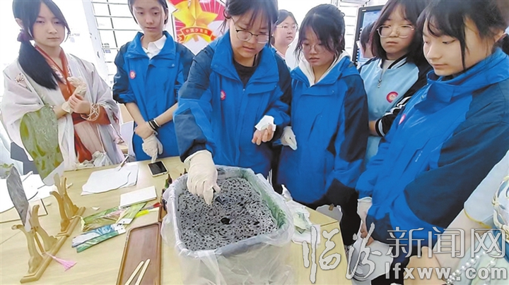 日前,山西师范大学实验中学开展了非遗漂漆团扇体验活动,让同学们体验中华优秀传统技艺之美,增强文化自信和民族自豪感。图为学生正在制作漂漆团扇。