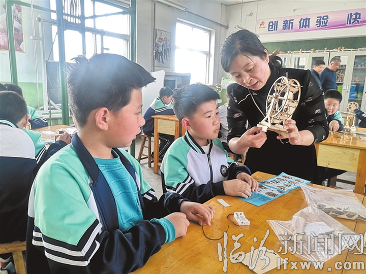 近年来,我市各类学校开展了形式多样的科技活动,以进一步增强学生们的科学兴趣、创新意识,提升其实践能力和科学素养。图为4月22日,襄汾县景毛乡景毛小学教师正在指导学生制作摩天轮模型。