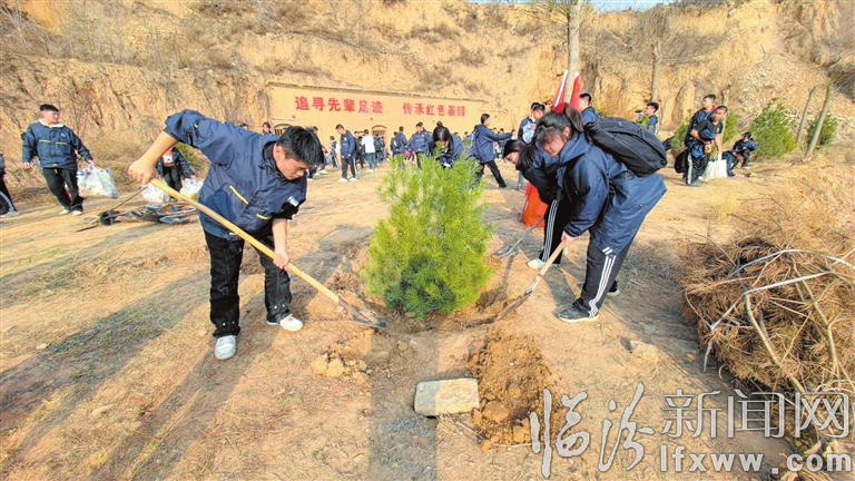 3月9日,临汾龙岳双语职业中学组织学生到大阳镇开展植树护绿活动,让学生在劳动实践中进一步增强爱护环境、保护生态的意识。