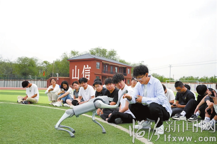 临汾新闻网讯 5月12日至16日,山西信息职业技术学院以人工智能为引擎启动职教活动周,深度赋能教学实践与产教融合,让学生在实践中提升专业技能。图中学生专注编程,操控四足智能机器人,尽显科技魅力。