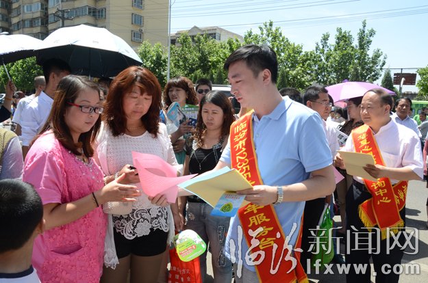 7日上午,活动组织者及志愿者一大早来到各考区设立助考站,为备战的考生准备了考试专用笔、小刀、橡皮等文具,为等待的家长免费提供了饮用水。在临汾新高中考场外,市团委副书记王栋作为志愿者之一,向部分家长介绍“12355”青少年服务热线的功能,讲解心理辅导对学生备考的重要性。