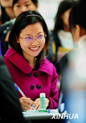 2月27日,一名女大学生在与用工单位签订用工意向。当日,由福州市妇联、市人事局等单位联合举办的2009年福州市女大中专毕业生就业供需见面会在福州金山人才交流中心举行,60多家用人单位提供2000多个文秘、财务、护理等适合女性就业的工作岗位。新华社记者 张国俊摄