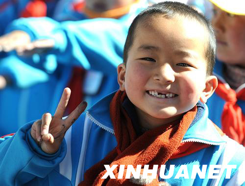 3月9日,拉萨第一小学学生洛桑扎西在参加课外活动。新华社