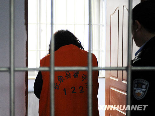 松原市扶余县看所内拘留的贩卖作弊器材的女教师刘艳华(左)(6月12日摄)。新华社记者 王昊飞 摄