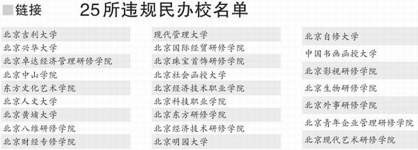 伴随着高招统招录取进入“中盘”,民办高校也开始迎来“招生季”。虽然北京市三令五申要求民办学校诚信招生,但仍有部分民办高校违规混淆学历层次、擅自设立专业招生。昨(16)日,北京市教委对本市25所违规招生的民办高校进行了通报批评,要求其立即整改。