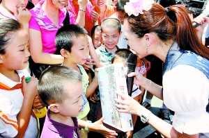 家长带小朋友与台湾著名亲子台主持人做游戏 本报记者 吴镝摄
