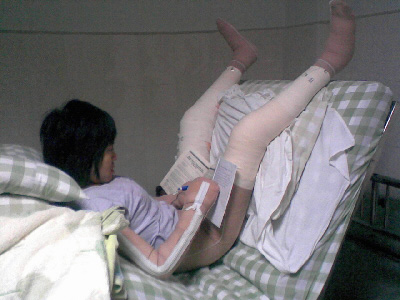 文明在病床上坚持学习,为博士生考试做准备。文明供图