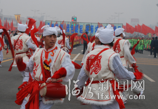我市各地开展了包括敲锣鼓、跑旱船、扭秧歌、赏花灯在内的社火表演活动,欢庆元宵佳节。 这不,丰富多彩的表演活动吸引了众多群众前往现场观看。(本报记者 李虎威 闫锐鹏 李自强 摄)