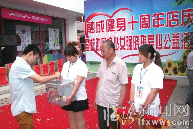 图为6月13日,融成士搏健身会所组织募捐为强晓琪捐款。 范韶华/摄 李晓琳/文