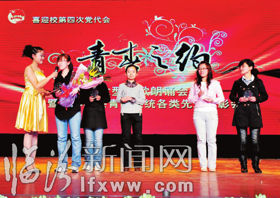 图为受表彰学生发表获奖感言的场面。饶二保摄