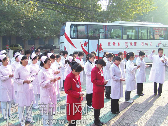 上午9点,抗击血荒无偿献血活动仪式隆重开幕,临汾现代女子医院全体员工在医院院前广场庄严宣誓并无偿献血,大学生社团联合会的代表也率领一批学生前来义务献血。献血活动顺利开展,主持人宣读倡议书,医护人员积极宣传并号召路过的群众,参与到义务献血的行列,短短一个小时,前来献血的群众已挤满了医院的一楼大厅,慕名而来的有社区居民、刚毕业的大学生、店铺老板、甚至有前来医院探望家属的朋友,其中一位19岁的小姑娘看到他们的活动,上前询问后说:我也要献血!因为我也是一名护士,救死扶伤是我的职责,对于这种公益活动,我是一定要献一份爱心的!可是令人感到遗憾的事,这位小姑娘刚刚下夜班,暂时不能献血。但是她说:“虽然这次我没能献血,过两天我倒班休息好了,我一定会再来的,我真切希望尽早让那些急需输血的病人看到生命的曙光。”大家都被她那种纯真、无私与执著感动了。有了这么多热心市民的踊跃参与,血荒又有什么可怕的呢?据了解,参加本次献血活动的临汾现代女子医院员工占到献血总体人数的一半以上,其中有很多都是奋战在一线的医护人员,她们都是在百忙之中抽出时间来献血,在现场常会看到很多人排队献血后即刻回到了本职岗位。此外,女子医院的保洁组、保安组及食堂的厨师也不甘落后,积极献血,更有甚者是带了家属一起来献血。《感恩的心》伴与耳边,更加激起了人们内心的热忱,很多路过的群众纷纷挽起衣袖,要奉献一份爱心。