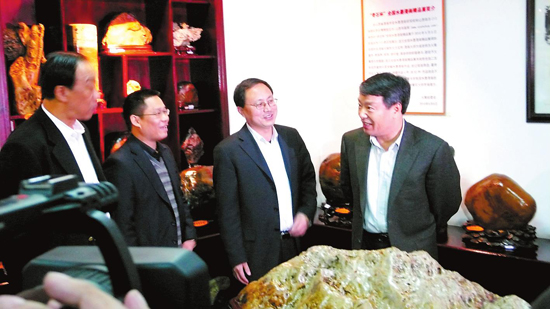 徐绍史部长(右一)参观二一三地质队奇石博物馆。沈伟 摄