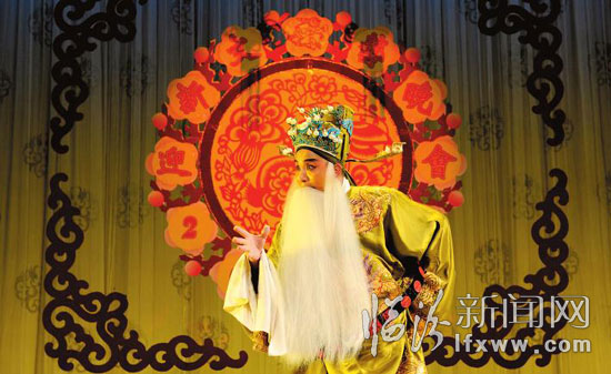 中国戏剧梅花奖获得者郭泽民在表演蒲剧《徐策跑城》。