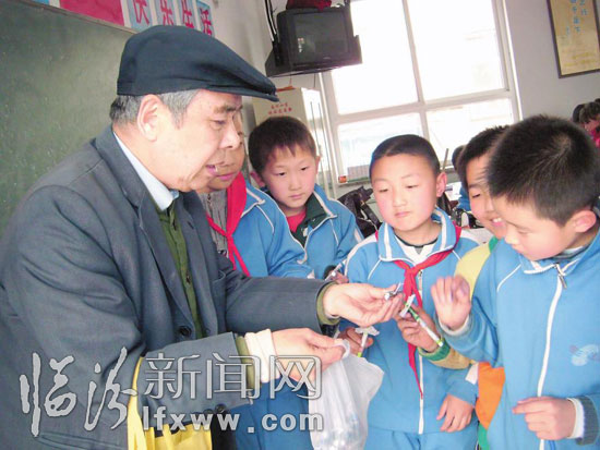 这位老人,就是市中小企业局退休干部郭景唐。从2004年以来,他先后跑遍了四中、南街小学、解放路小学、解放二校、东关小学、时代风华等20多所学校,义务修理钢笔23400多支,被孩子们亲切地称为“钢笔爷爷”,被人们看成是身边的活雷锋。