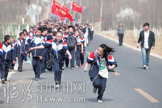 4月9日早晨6时30分,连佳舜和其他初一年级250余名学生在学校门口集合,整装待发。在校长李延杰的一声令下,他们开始了“走向大自然,远足拉练行”。一路上,“成功来自坚持、执着创造奇迹”,“态度决定成败、勤奋铸就辉煌”的口号声此起彼伏。同学们脸上挂着自信的笑容,昂首挺胸,阔步前行,引得路人纷纷驻足围观。