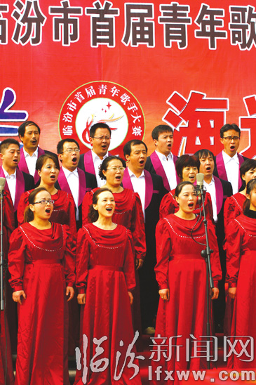 山西焦煤霍州煤电集团阳光合唱团在霍州赛区海选启动仪式上为现场观众奉献了歌曲《阳光路上》与《美丽的家乡临汾》,赢得在场观众的阵阵掌声。